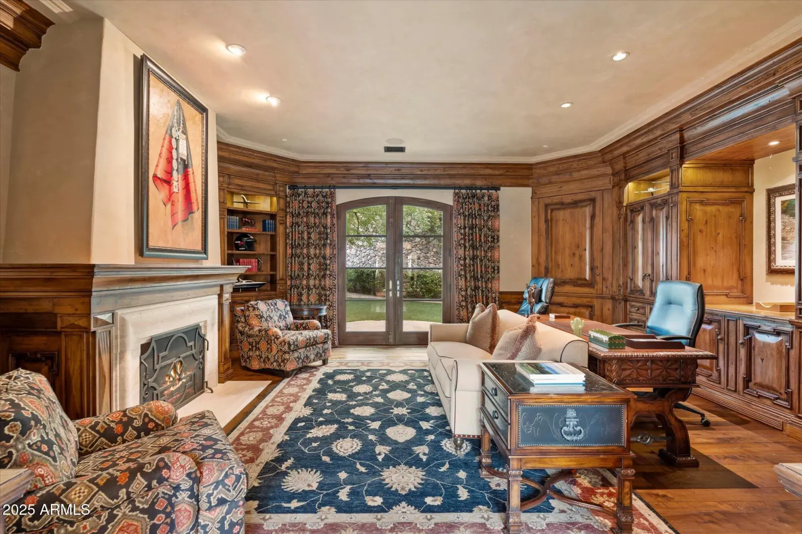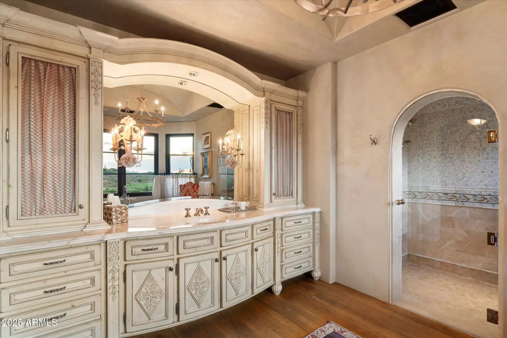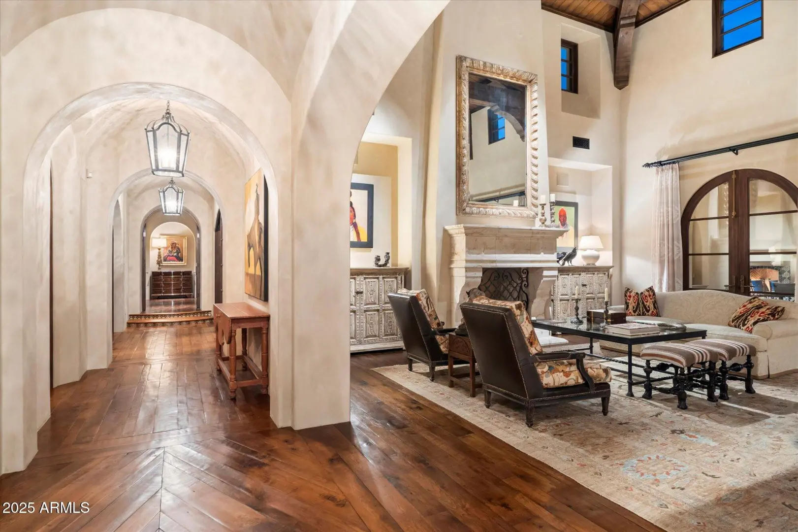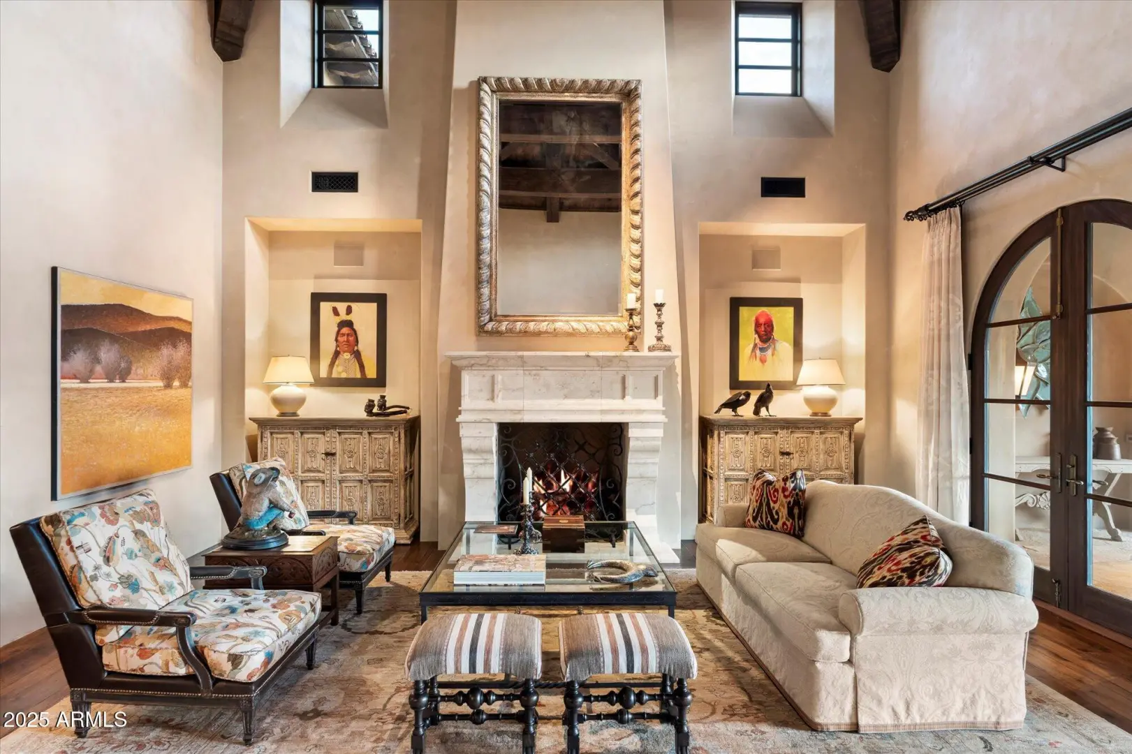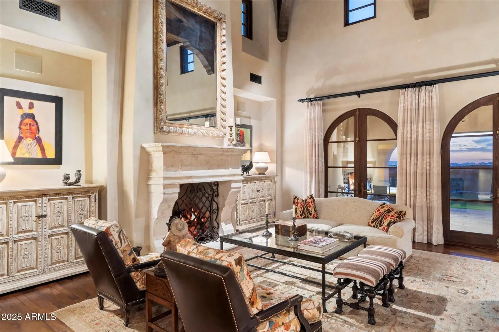Warm and welcoming, nestled on a flat pad, motor court and zero-grade entry both at the main house and detached guest house. Access front-and-rear yard without elevation changes. Secondary family room, wet bar and additional bedrooms are all on the upper level, offering views. Enjoy a sprawling front row seat experience of Silverleaf's vibrant golf course, diamonds in the skies and city lights below at night and captivating mountain views throughout the day. Flawlessly crafted; meticulously maintained by valley's renowned luxury home builder, Desert Star Construction. This signature address encompasses over 9 acres; 13,961 square feet of living space to including 1,789 SF 2-bedroom detached guest home. Quick move-in, Golf Membership and Furnishings can be Available. Easy to show.