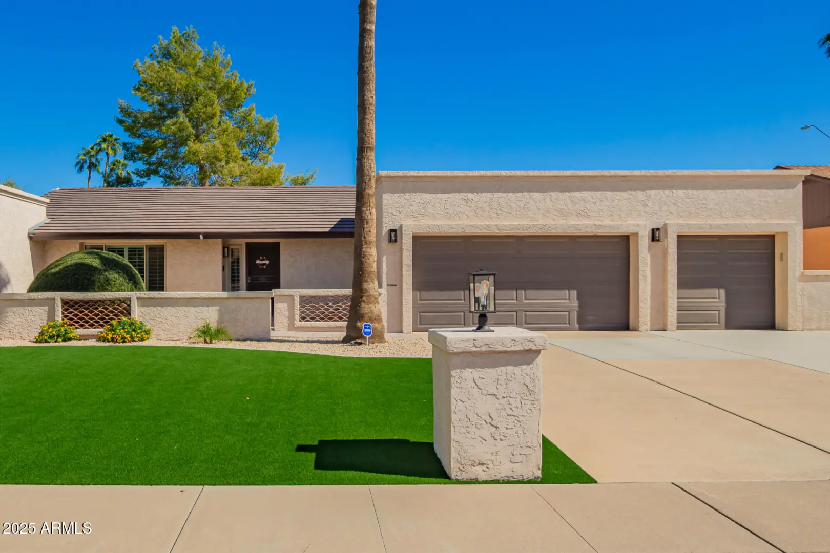 Tucked into a quiet cul-de-sac, this former model home showcases durable block construction and thoughtful updates throughout. Fully renovated in 2017 and carefully maintained since, it offers a spacious floor plan and a 3-car garageāan uncommon feature in this neighborhood. Inside, solid wood cabinetry, granite counters, GE Profile appliances, and quality finishes reflect the lasting care poured into the property. A cozy fireplace anchors the family room, while the private primary suite provides generous closet space, complimented by three additional bedrooms for family, guests, or office use. New roof as of 2025. Front and backyard were fully redesigned in 2022, creating an entertainer's dream with an extended patio, paver walkways, low-maintenance turf, and a commercial-grade p