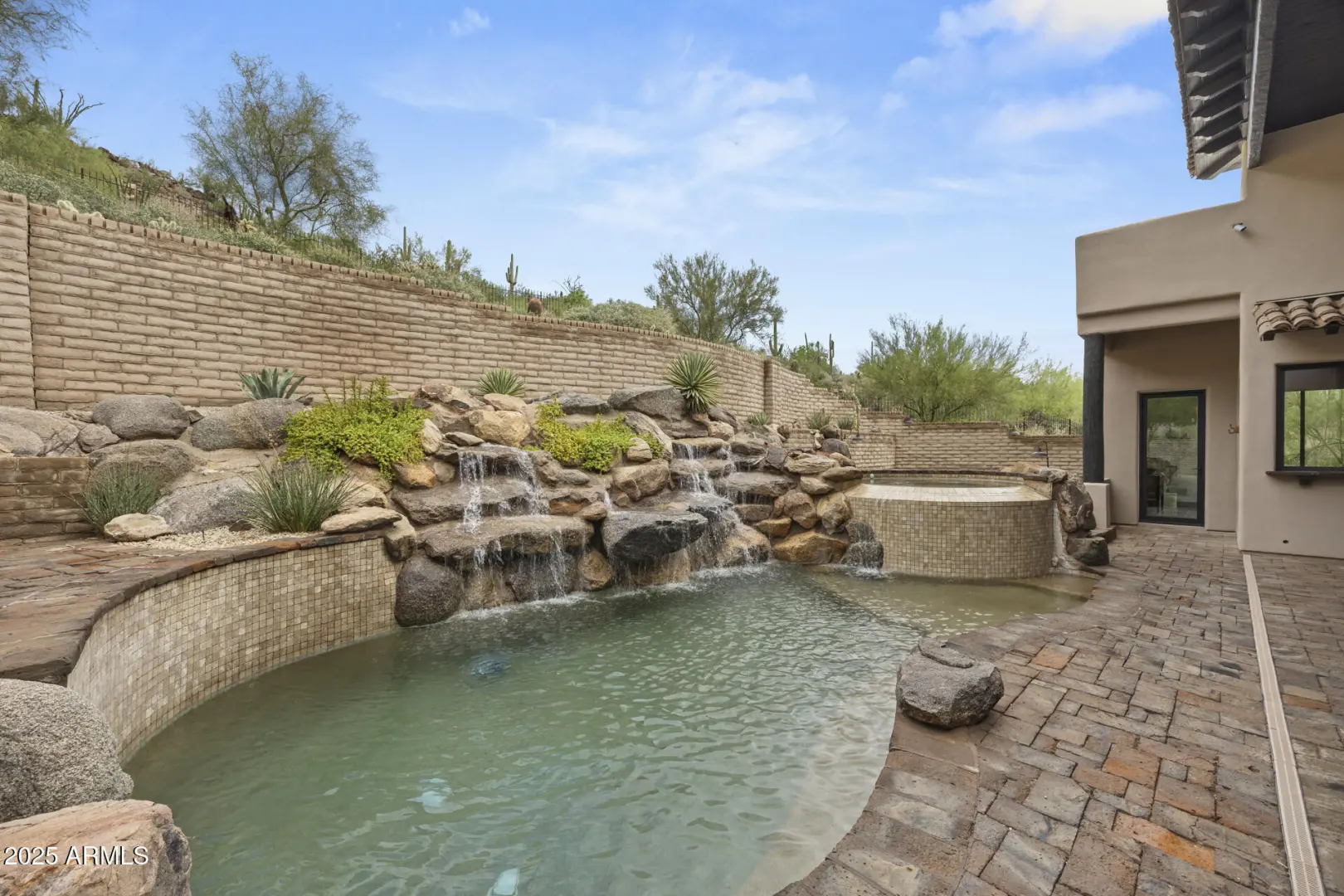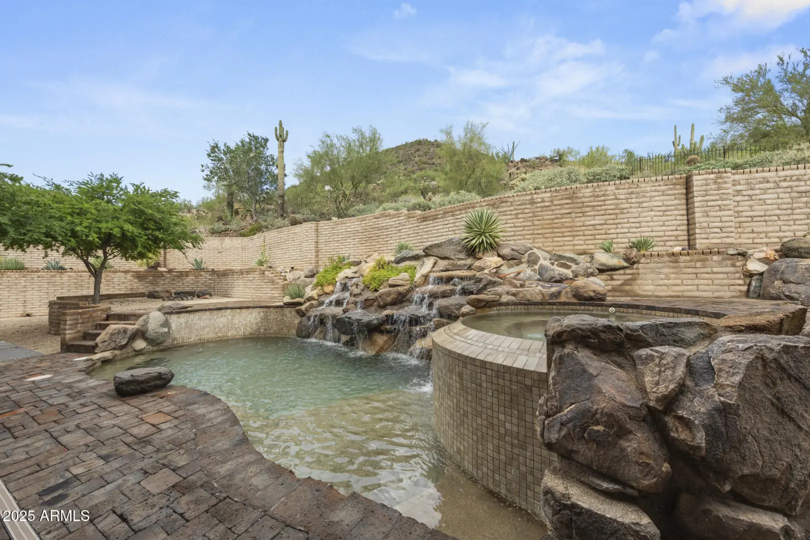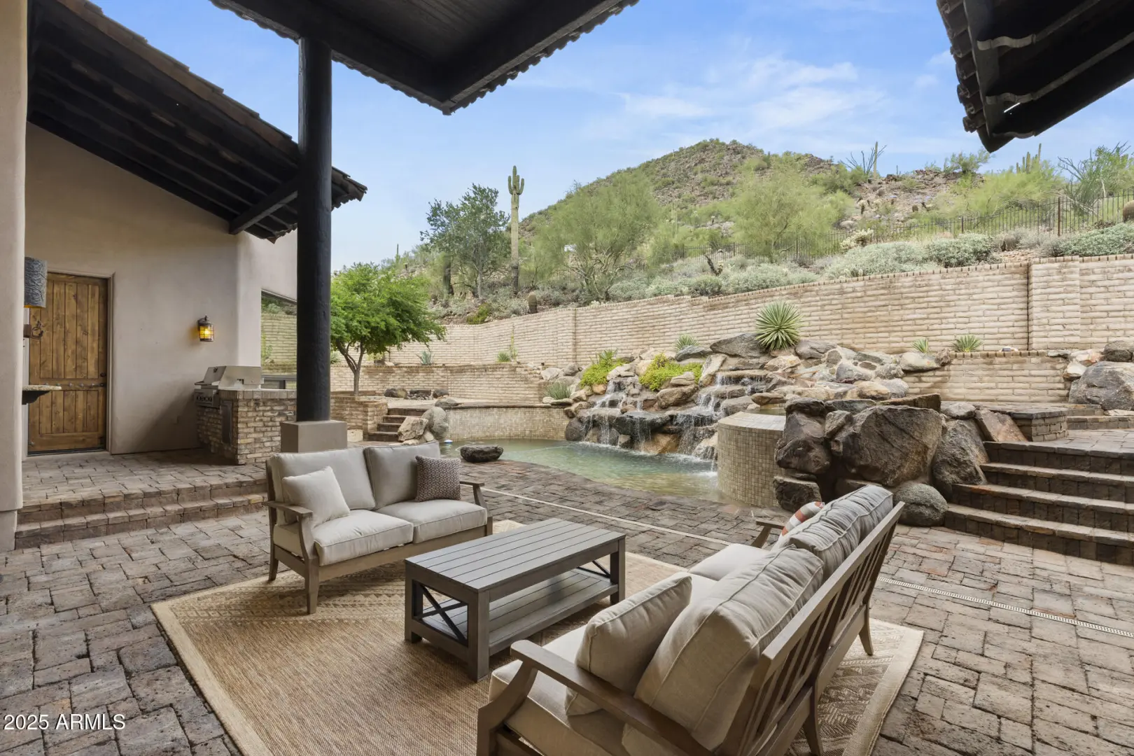 Tucked against the McDowell Mountains in the double-gated enclave of Hidden Hills, this Luxury Hillside Hacienda sits on 1.267 acres, inviting you to slow down and savor the beauty of desert living. Blending authentic character with modern sophistication, viga-beamed ceilings soar 16 feet high while a wall of windows fill the great room with light and warmth. A custom copper-topped bar anchors the entertaining space, and en-suite bedrooms with private patios seamlessly blend indoor comfort with outdoor serenity. Smart-home features place lighting, pool systems, and window blinds at your fingertips, while thoughtful design keeps the atmosphere elegant and inviting. The attached casita—with private entry, garage, and over-sized walk-in closet—offers ideal guest accommodations. MORE...