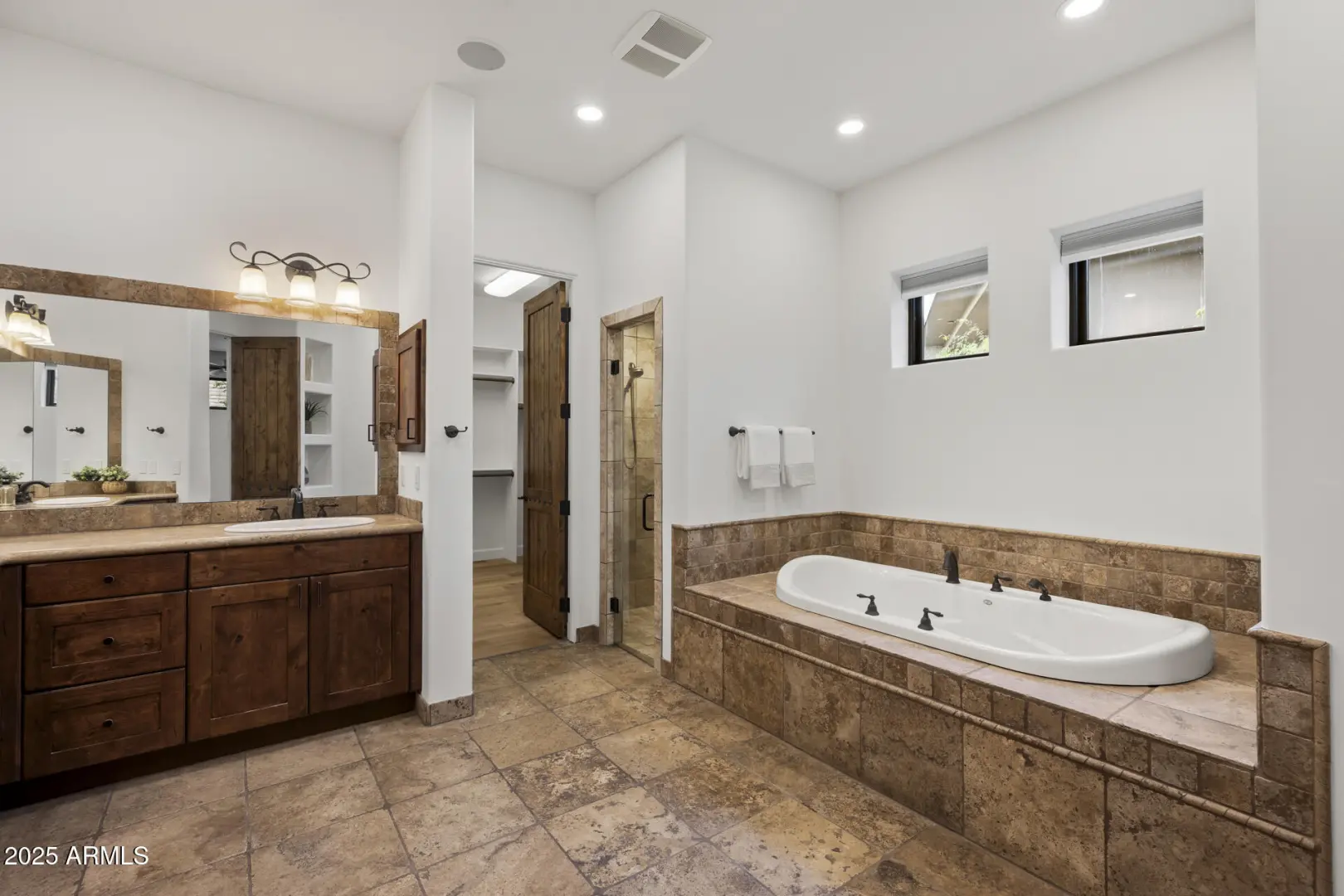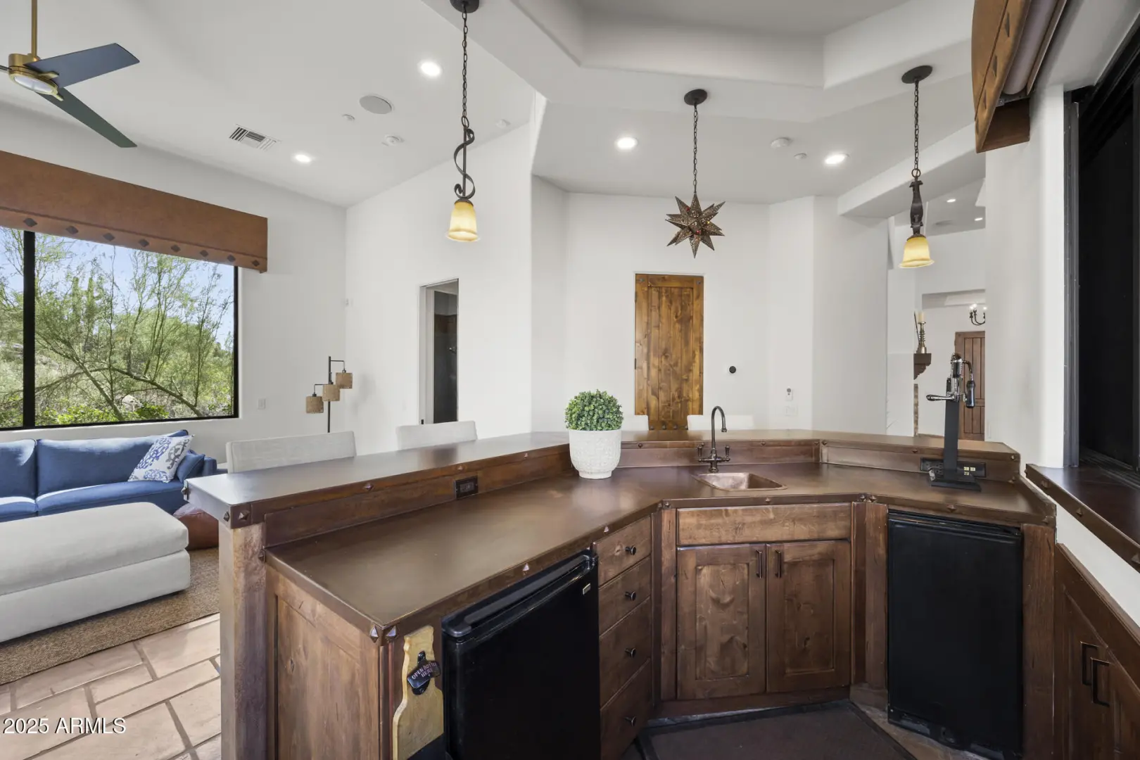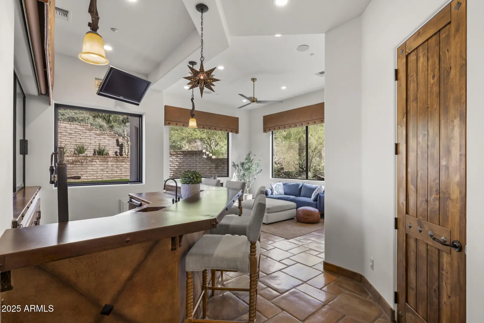Tucked against the McDowell Mountains in the double-gated enclave of Hidden Hills, this Luxury Hillside Hacienda sits on 1.267 acres, inviting you to slow down and savor the beauty of desert living. Blending authentic character with modern sophistication, viga-beamed ceilings soar 16 feet high while a wall of windows fill the great room with light and warmth. A custom copper-topped bar anchors the entertaining space, and en-suite bedrooms with private patios seamlessly blend indoor comfort with outdoor serenity. Smart-home features place lighting, pool systems, and window blinds at your fingertips, while thoughtful design keeps the atmosphere elegant and inviting. The attached casita—with private entry, garage, and over-sized walk-in closet—offers ideal guest accommodations. MORE...