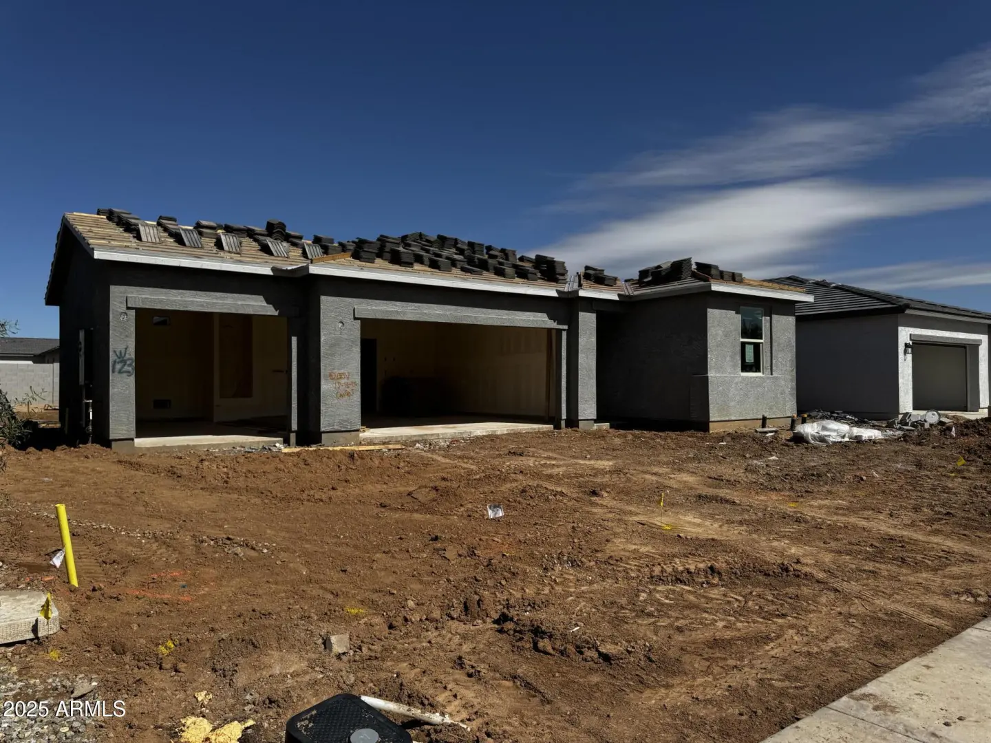 Welcome to the Poppy! Boasting 2,072 sq ft, 4 bedrooms + Den, 3 baths; this home offers a versatile floor plan perfect for any buyer. Enjoy 9 ft ceilings, wood-look tile in main areas, carpet in bedrooms, and 3 car garage. The spacious kitchen features the Artisan Collection with 42'' upper grey cabinets, quartz countertops, tiled backsplash, and hardware. The great room has a 4-panel glass slider that opens to a covered patio. The Den can be a office, play room, or additional living area. GE washer/dryer, fridge, and blinds also included! The Amarillo Creek community offers parks, pickleball court, basketball, and is conveniently located near Route 347 for easy commuting to Phoenix. Minutes from dining, shopping, and all the entertainment that Maricopa has to offer.