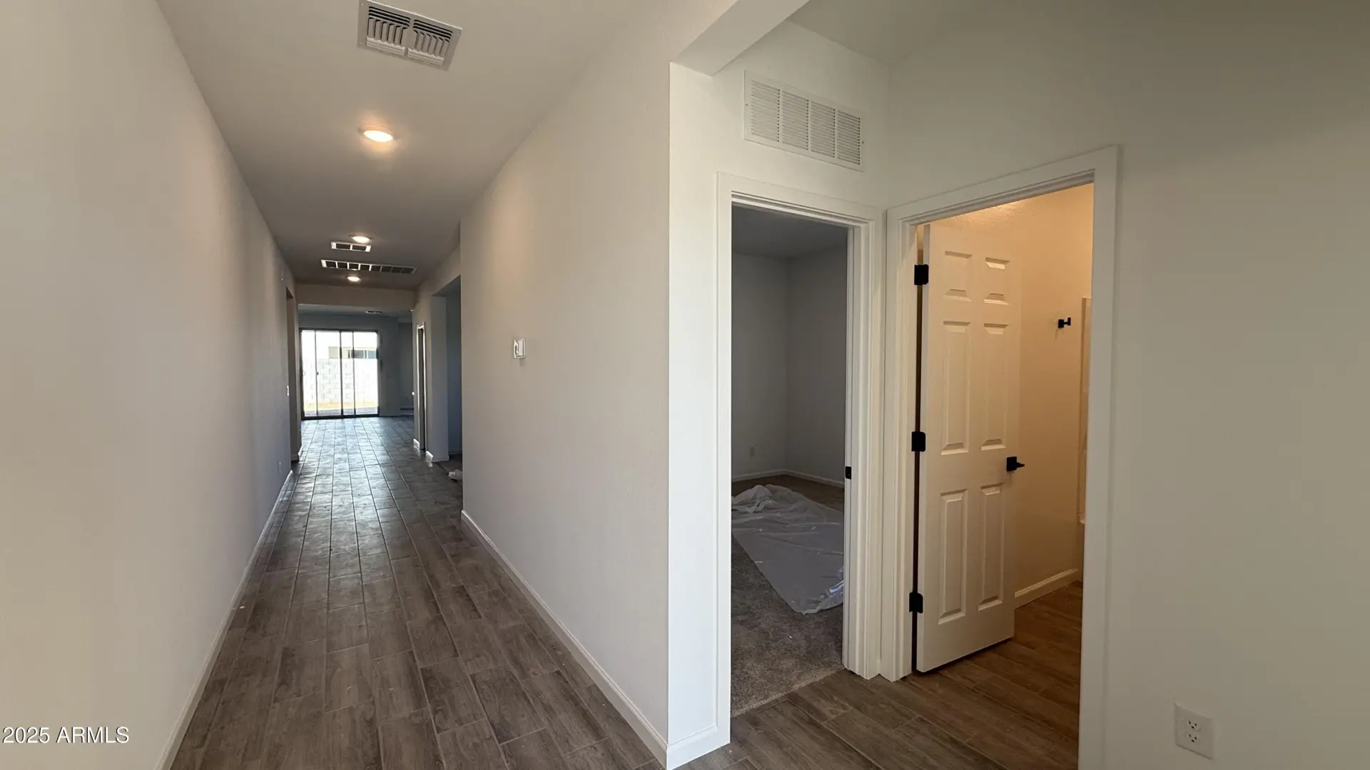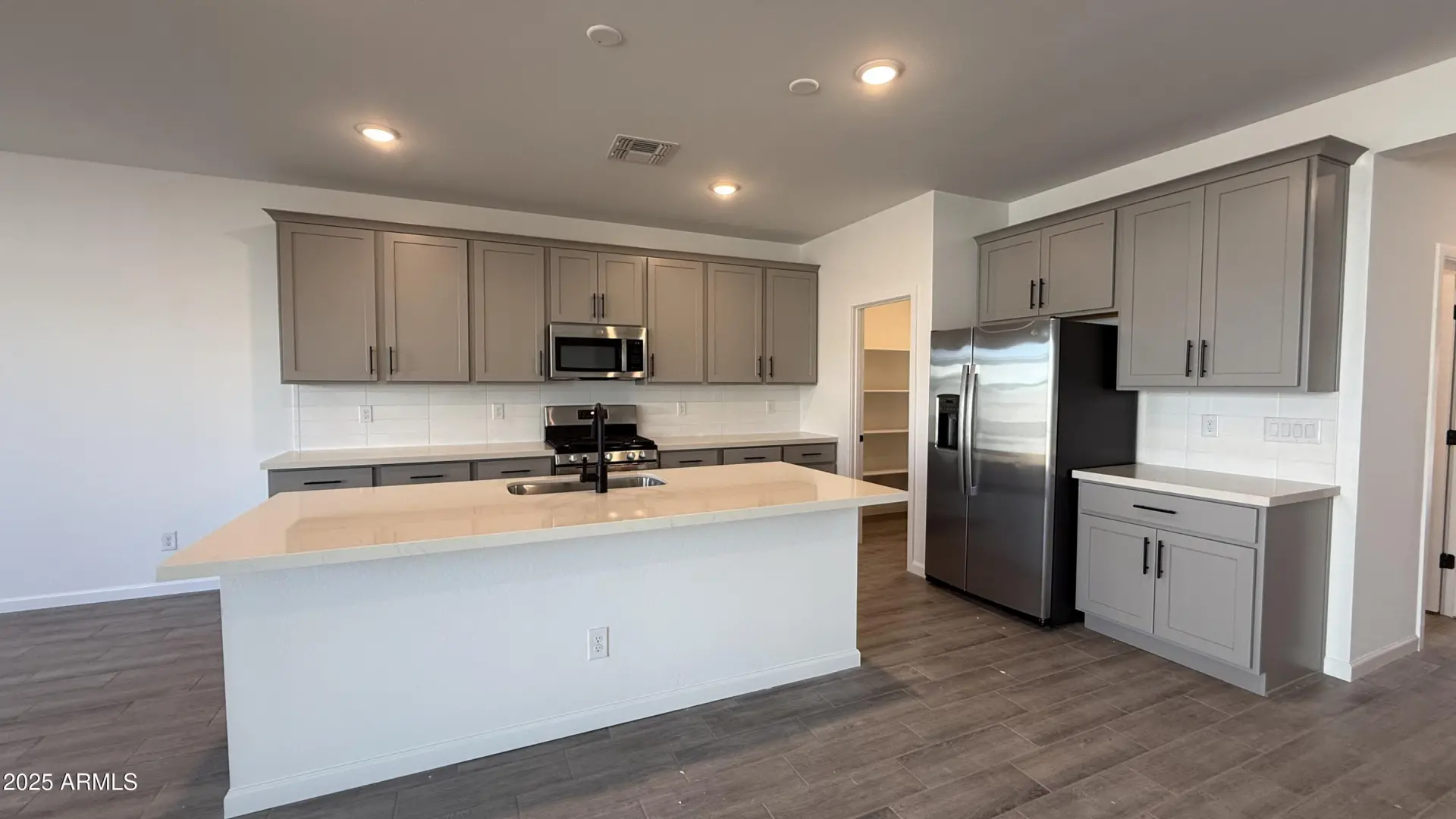 Welcome to your dream garage.. and home on a corner lot! The Ruby floor plan offers a super garage, a 4-car tandem with plenty of room for all your cars and hobbies. This brand-new construction showcases Spanish architecture and a 4-panel Center Sliding Glass Door from the Great Room to the Covered Patio! Step inside and enjoy the open-concept layout and 9'' ceilings. With 2,173 square feet of well-designed living space, this single-story offers 3 bedrooms, a large den, and 2.5 bathrooms. You'll love the 7 x 22 Lakewood Vista tile floors throughout the main living areas, offering elegance and easy maintenance. The kitchen is a show stopper with Crisp Stria Quartz countertops, a large island, Grey shaker cabinets, a 4 x 16 Golden Horizon backsplash, and a stainless steel gas range.