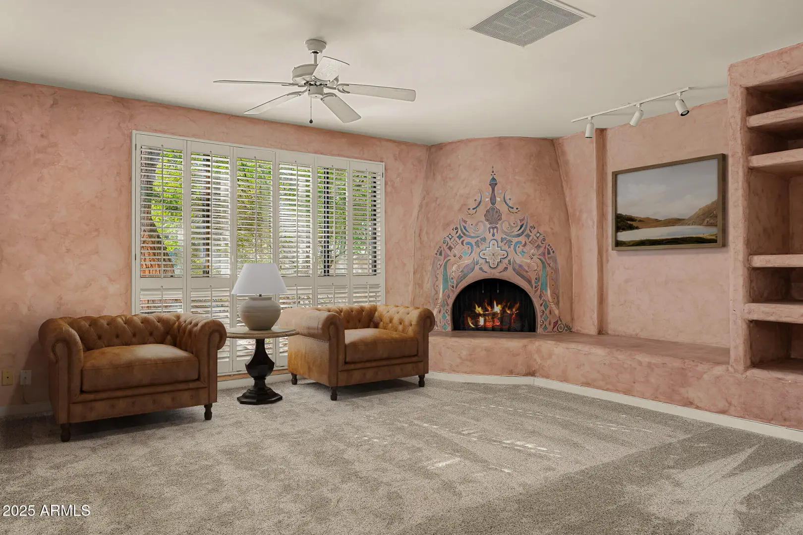 Brimming with charm and timeless elegance, this beautifully maintained Adobe-inspired home is a true gem. Featuring four bedrooms and three bathrooms, it offers a warm and inviting ambiance from the moment you step into the serene front courtyard, where the soothing sound of a trickling water feature sets the tone for relaxation. Inside, the recently renovated kitchen is a dream for entertaining, complete with granite countertops, high-end appliances, a dual oven, and a beverage bar with an ice maker. The primary suite is a private retreat, boasting a spacious sitting/TV area with a cozy gas fireplace, two oversized walk-in closets, an extended dual-sink vanity, and a generous walk-in shower. This home radiates warmth and character at every turn. Don't miss the opportunity!