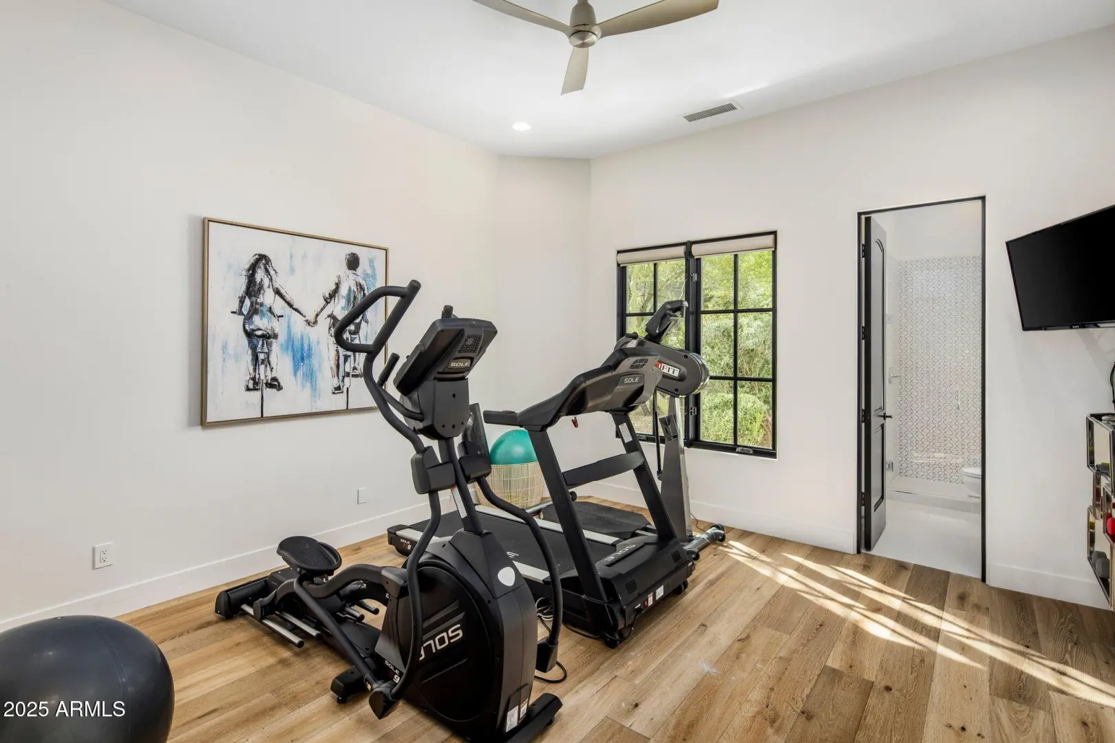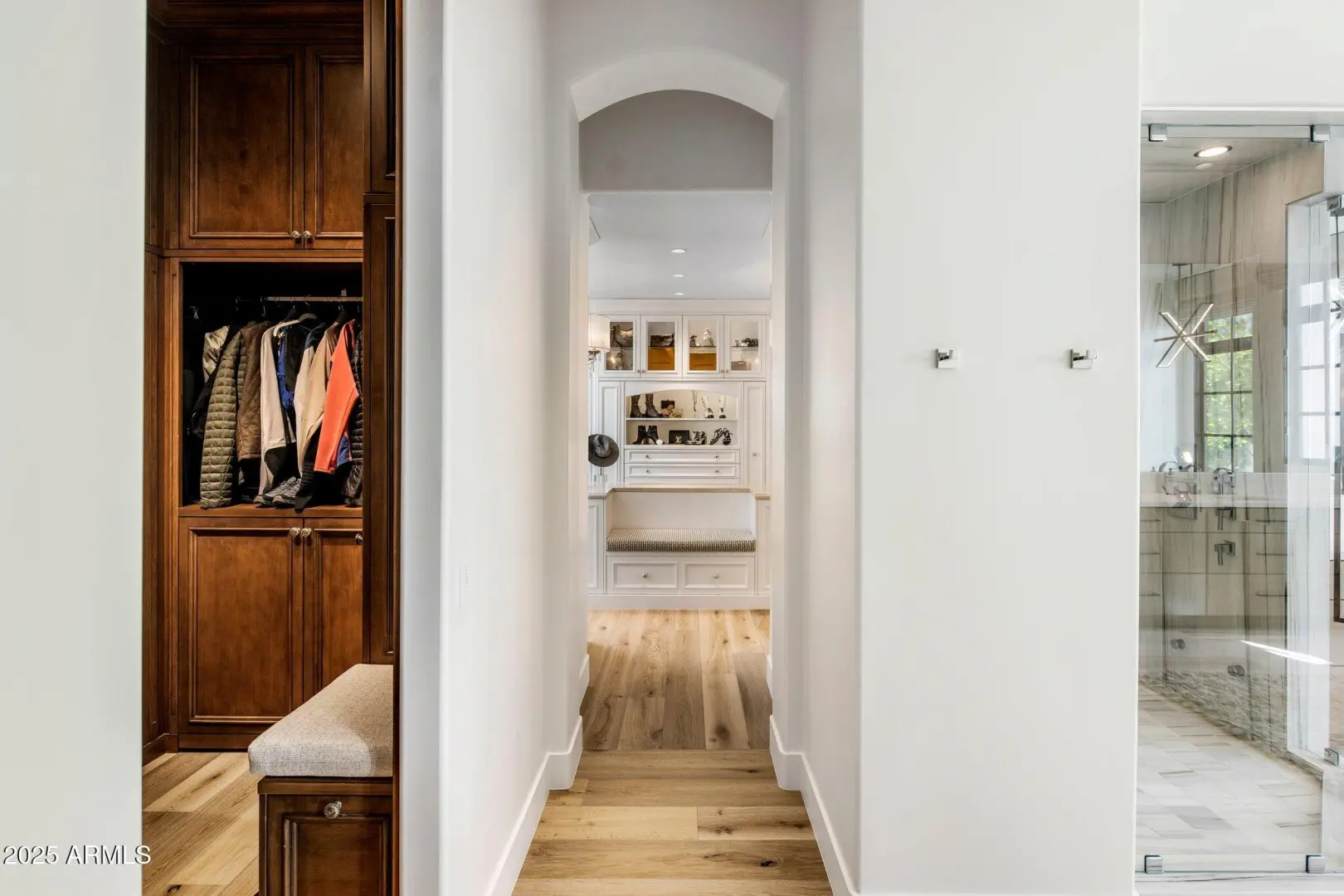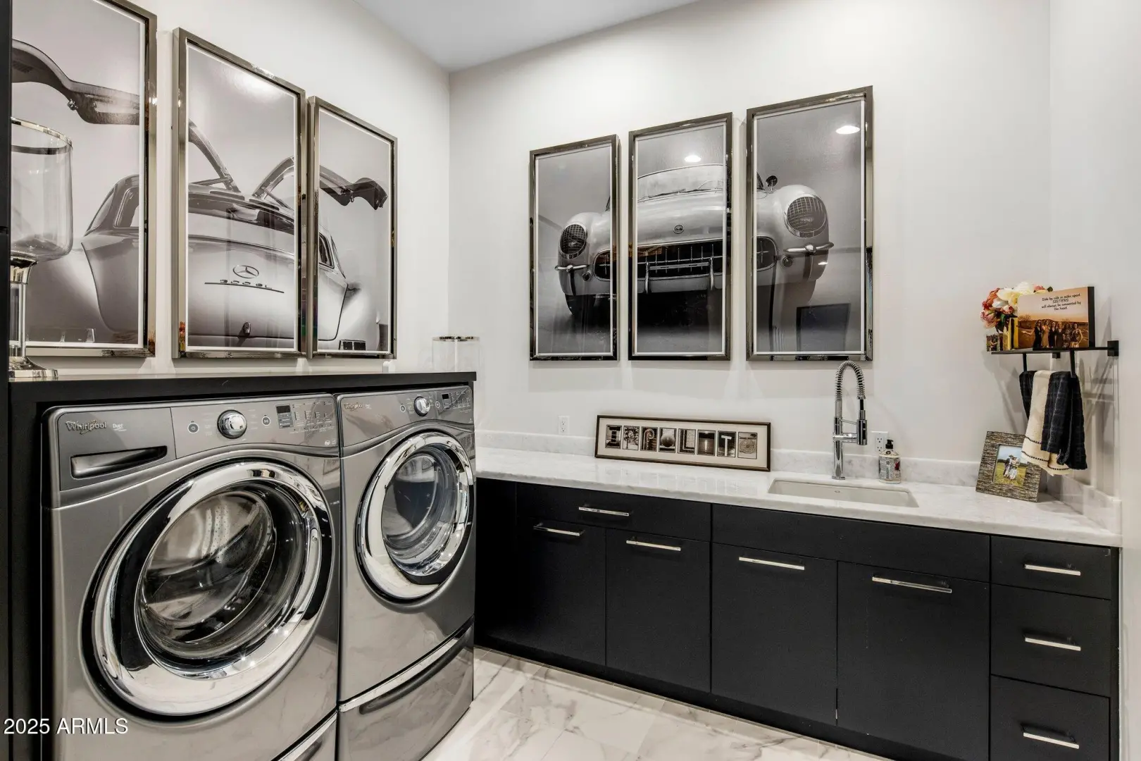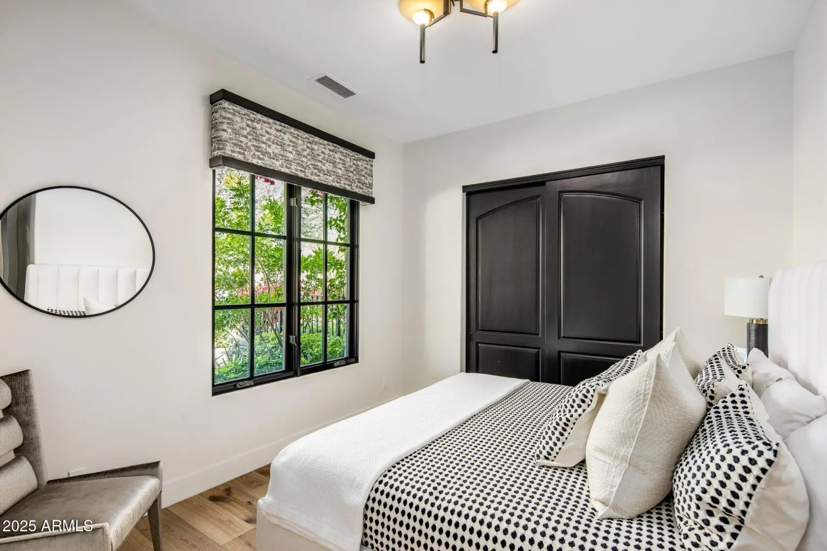 Stop looking; you've found your dream home! This completely remodeled, one of a kind modern estate is sure to impress with its designer finishes and stylish flare, while still maintaining a luxurious Arizona feel. Walking through the entry path, hearing the trickle of the water feature and staring directly at Camelback Mountain, your jaw will hit the ground. Tall ceilings and a collapsing wall, perfectly frame Camelback Mountain. With 4 en-suite guest bedrooms, a stunning primary suite, plus a bonus room that would be ideal for office or play room there is plenty of space for everyone. Primary suite is a slice of heaven with cozy fireplace, sitting area, oversized bathroom and not just one, but two, oversized walk-in boutique clothing closets.