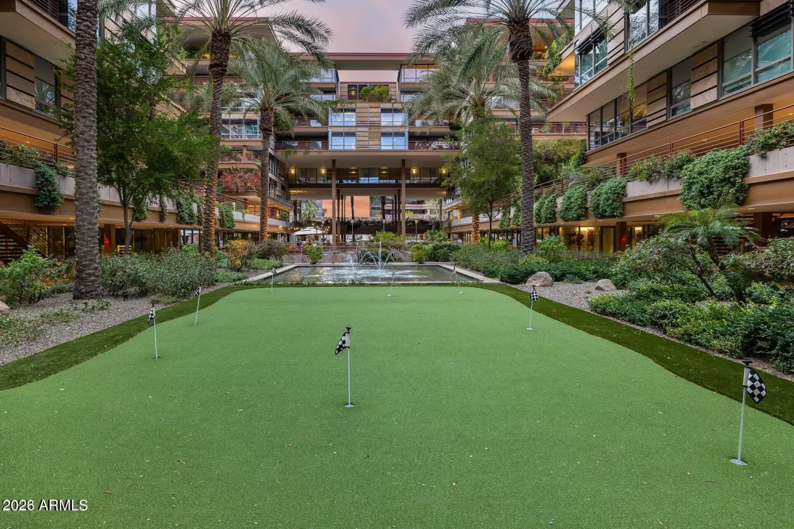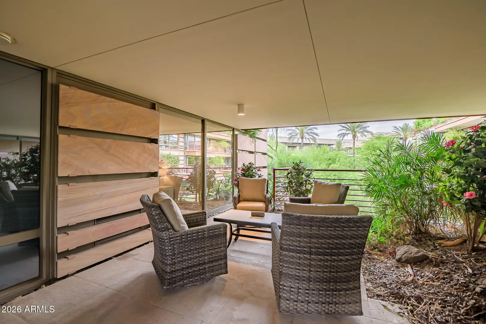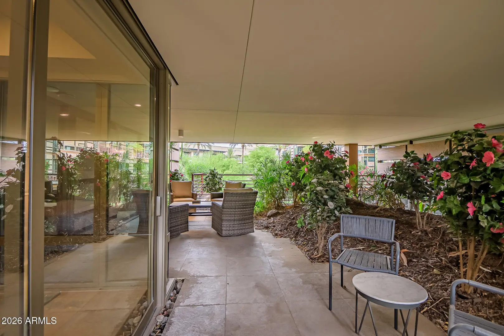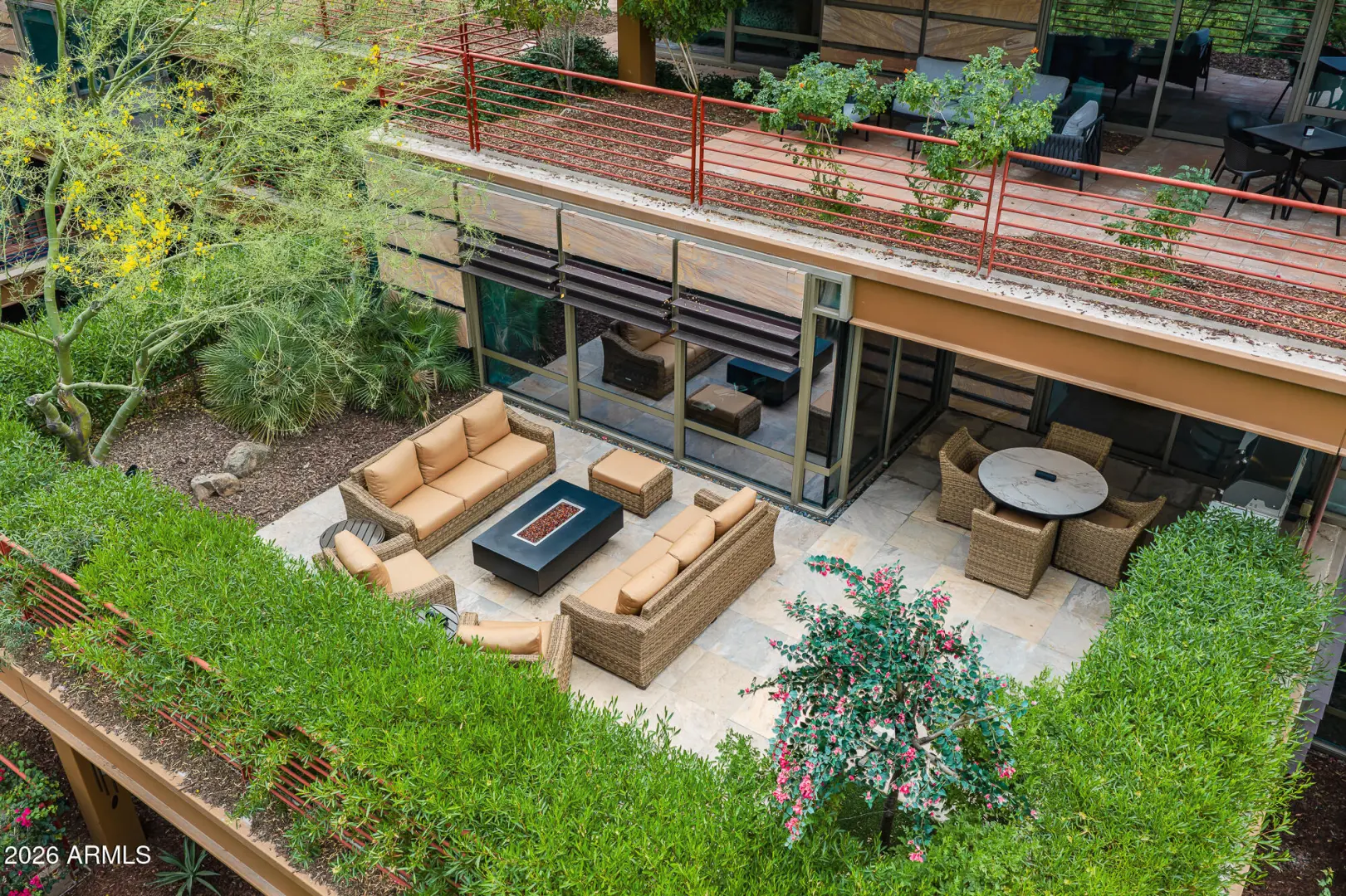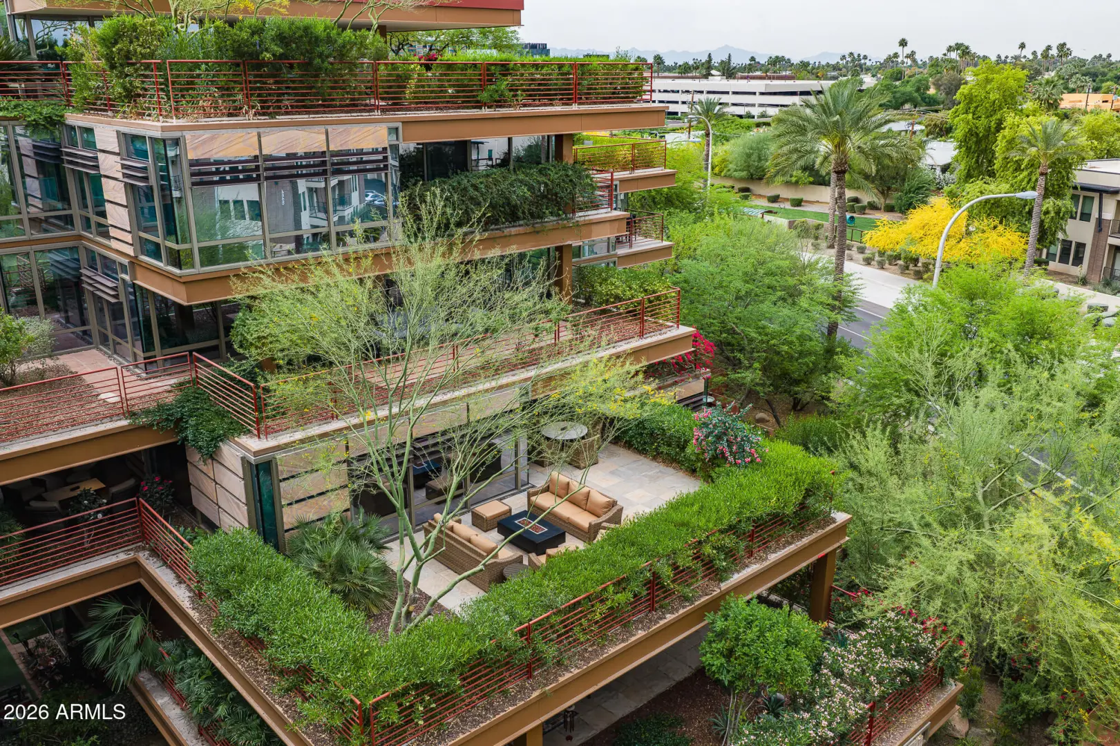 ONE-OF-A-KIND find in the magnificent Optima Camelview Village. Beautiful views from every room and the 1851 sqft. wrap-around landscaped decks & terraces in this sought after corner location, including Camelback mountain, lush desert flora, shrubs & trees. This delightful open flowing floor plan feels inspired from the moment you enter. Three spacious en-suite bedrooms, 2 with separate terrace access and an extremely rare additional office / den. One of only a few units with 3.5 baths at Camelview. Designed with Platinum Package finishes. Timeless natural stone floors, extensive upgraded LED lighting, molding and trim. Brand new luxurious custom remodeled cabinets & countertops. Sub Zero / Bosch Appliances. Stylishly sleek and highly livable. MUST SEE IN PERSON!