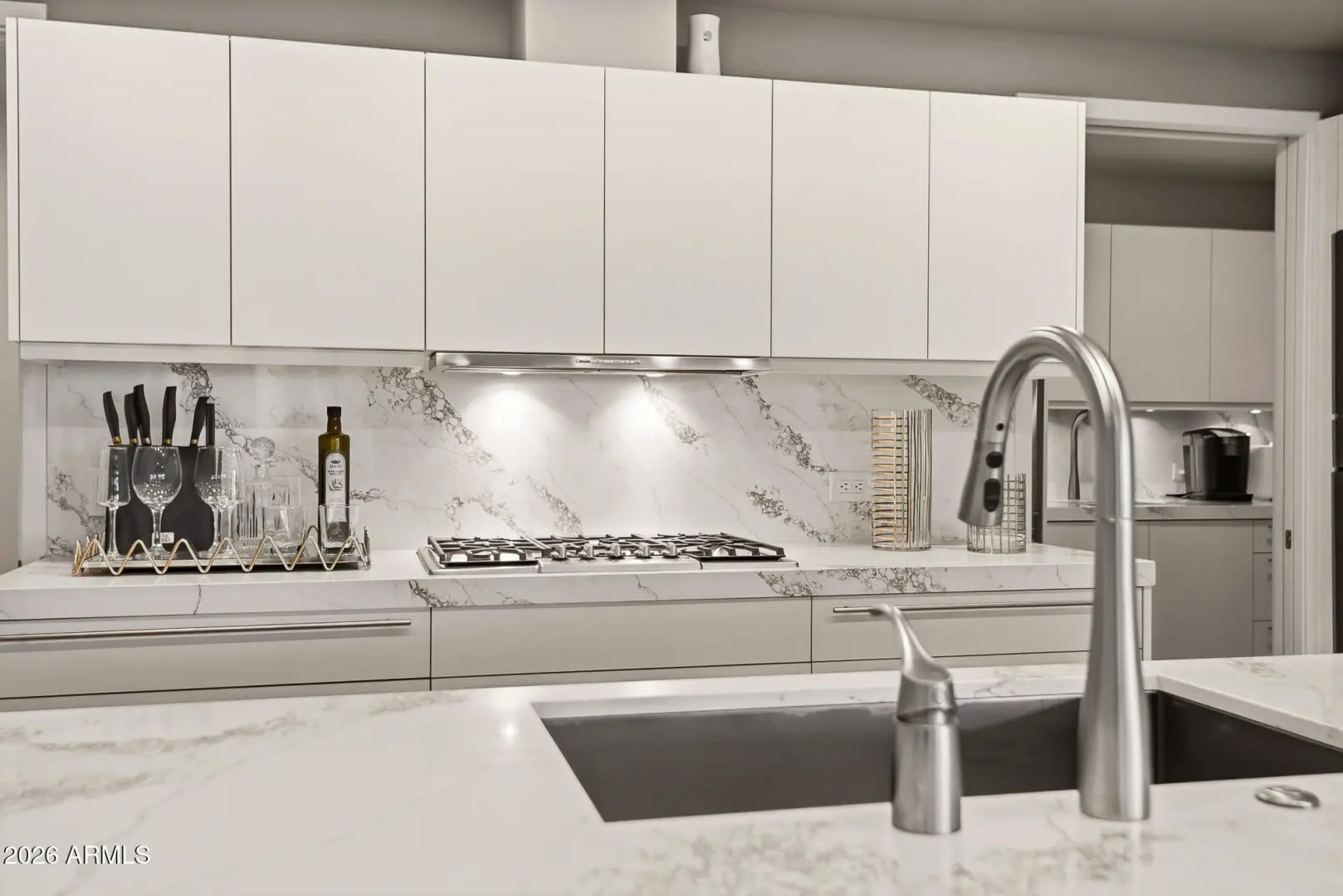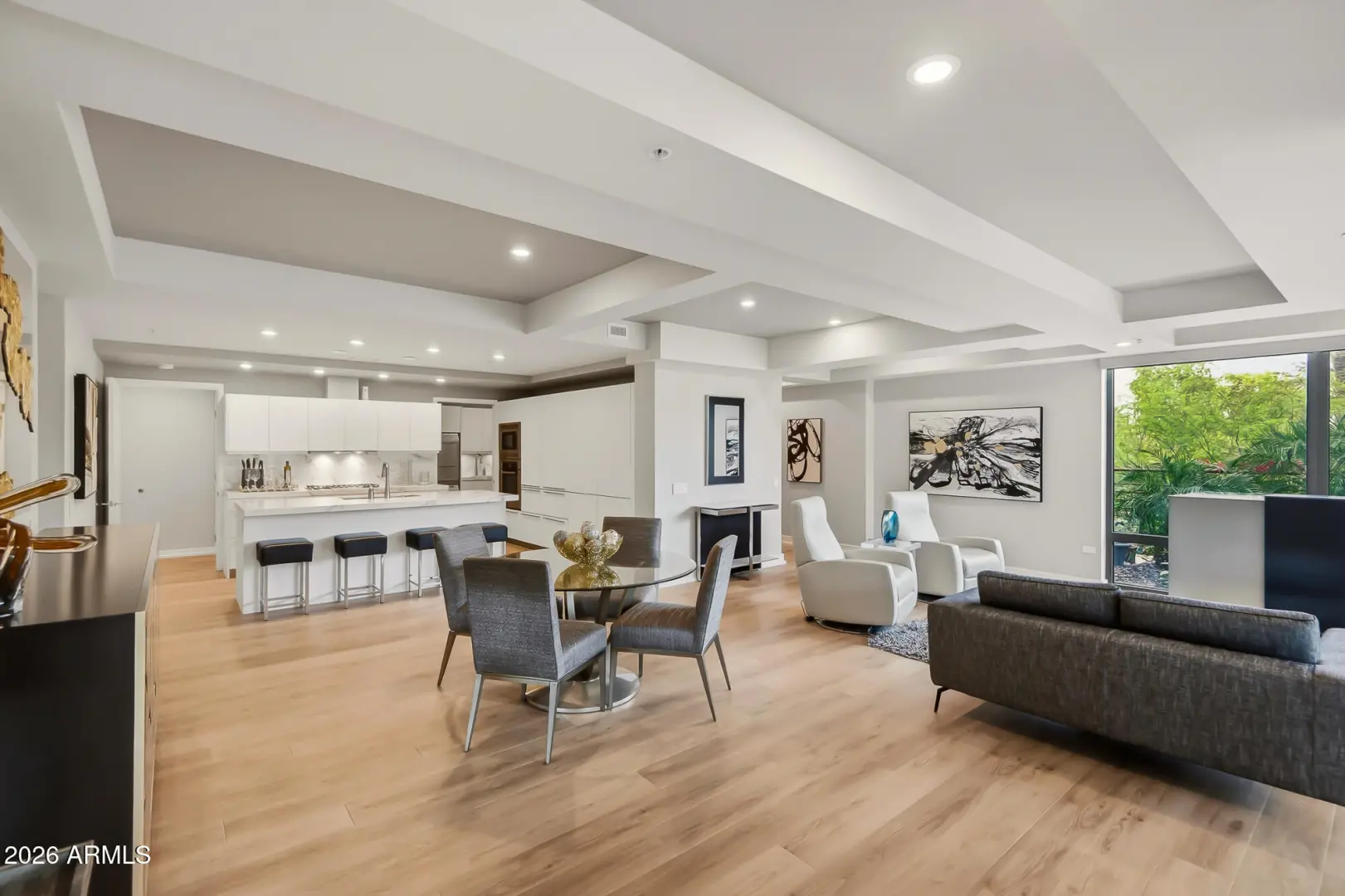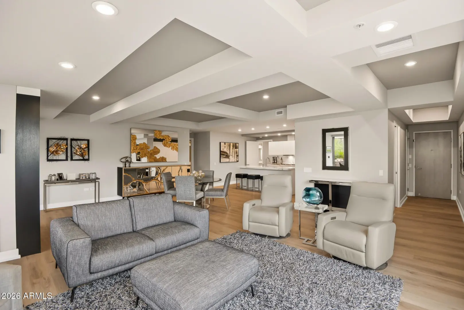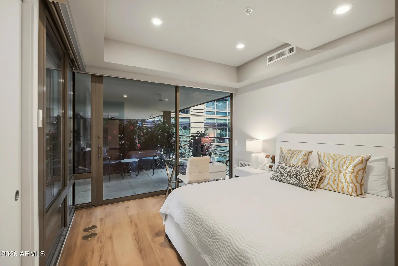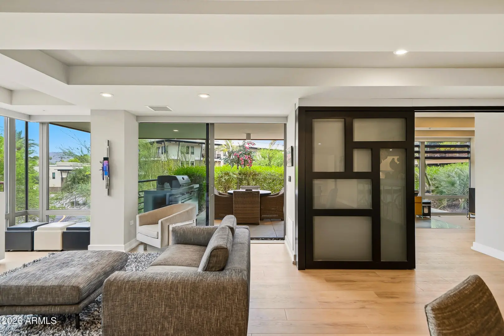 ONE-OF-A-KIND find in the magnificent Optima Camelview Village. Beautiful views from every room and the 1851 sqft. wrap-around landscaped decks & terraces in this sought after corner location, including Camelback mountain, lush desert flora, shrubs & trees. This delightful open flowing floor plan feels inspired from the moment you enter. Three spacious en-suite bedrooms, 2 with separate terrace access and an extremely rare additional office / den. One of only a few units with 3.5 baths at Camelview. Designed with Platinum Package finishes. Timeless natural stone floors, extensive upgraded LED lighting, molding and trim. Brand new luxurious custom remodeled cabinets & countertops. Sub Zero / Bosch Appliances. Stylishly sleek and highly livable. MUST SEE IN PERSON!