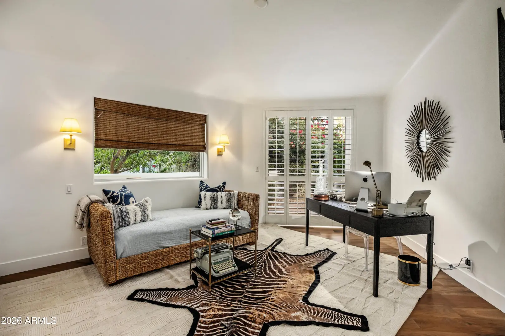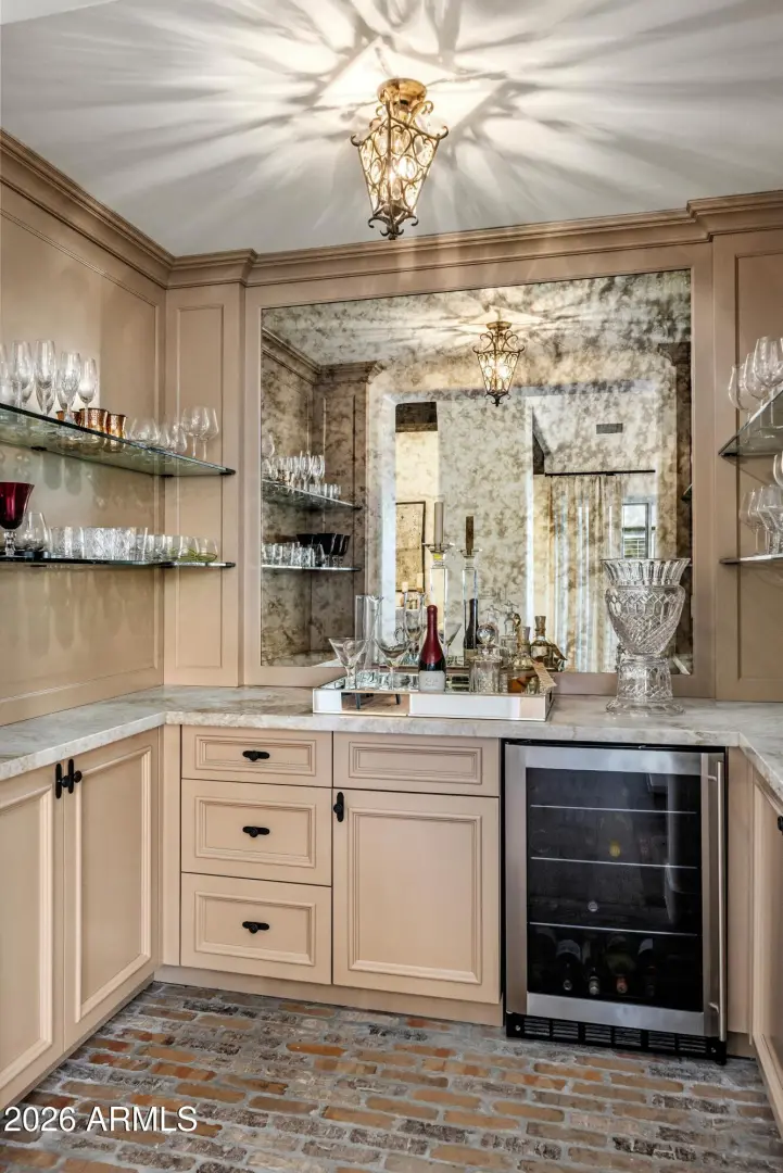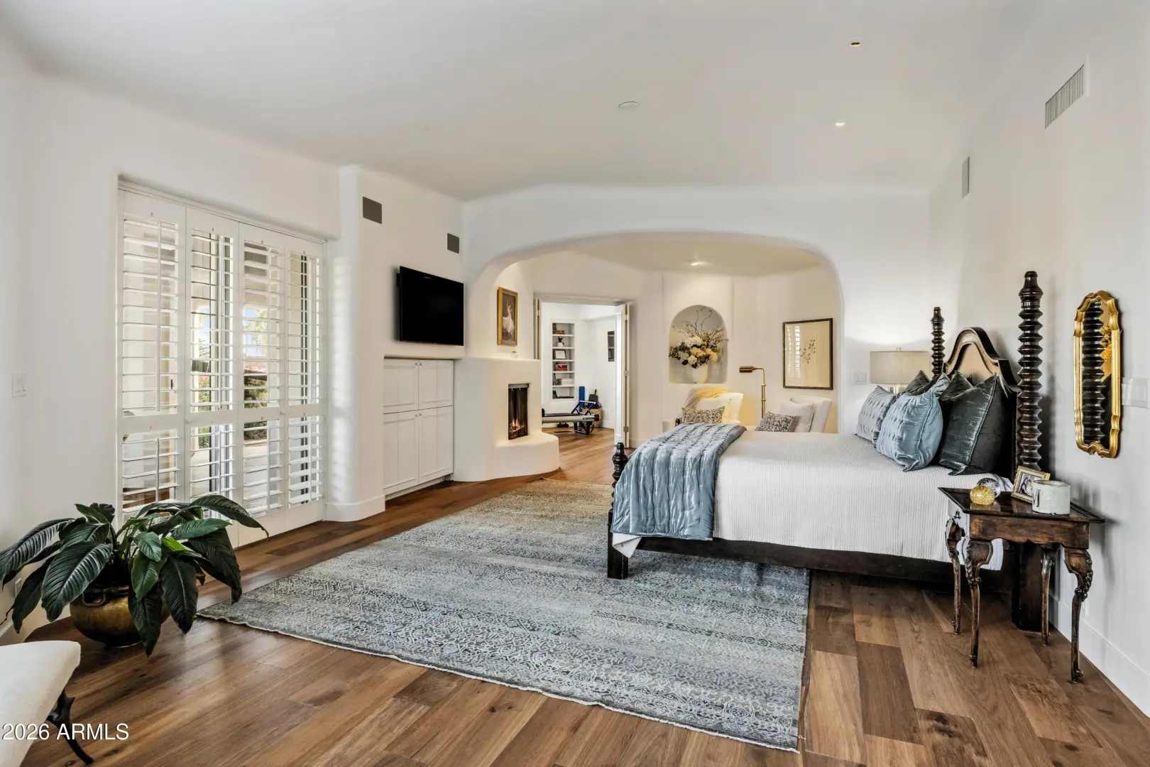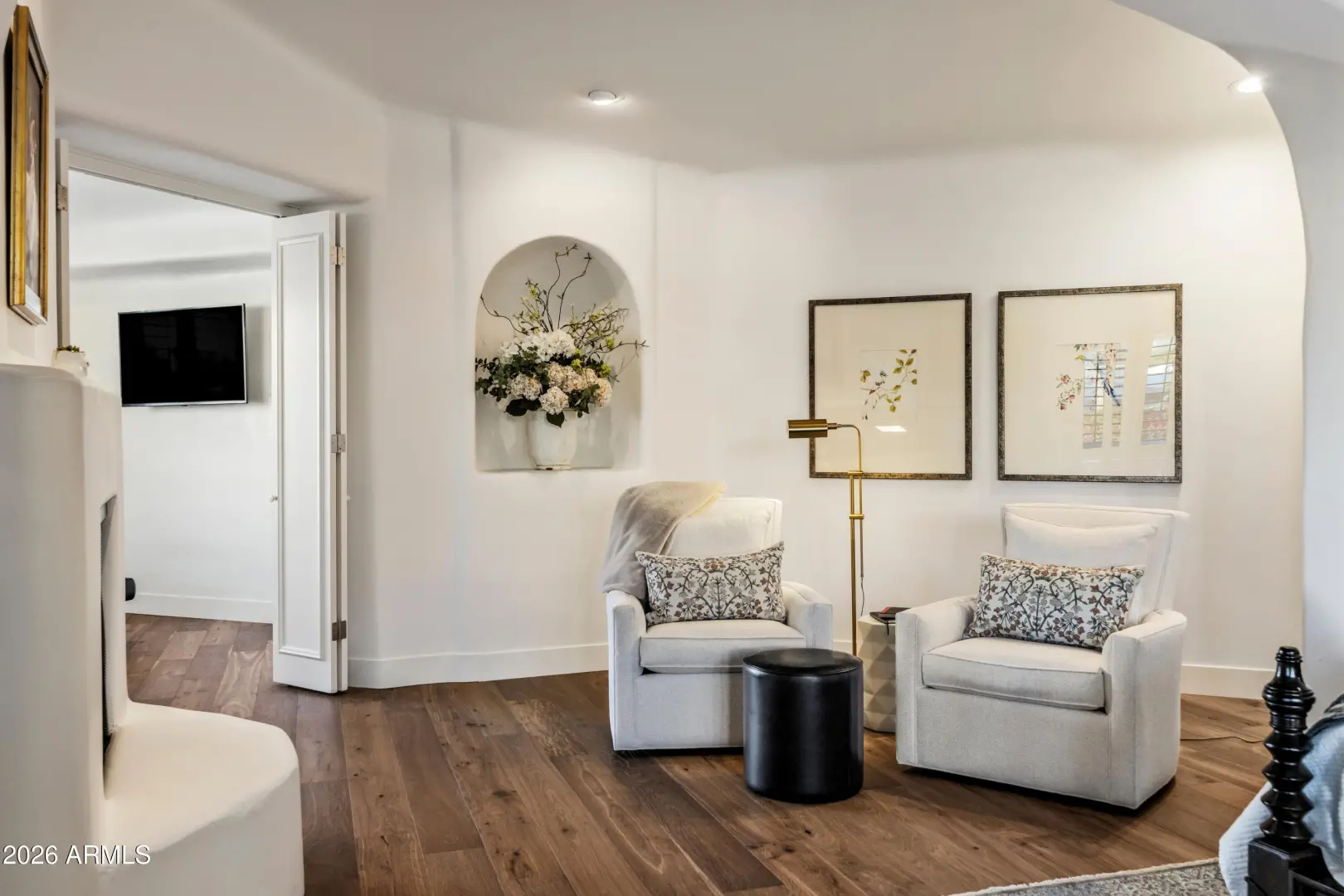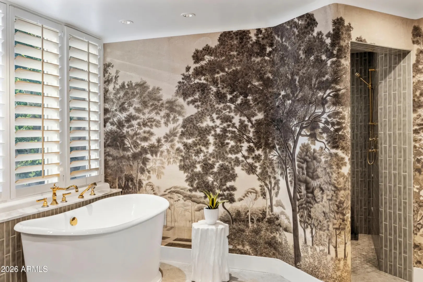 Refined living awaits within guard gated Pinnacle Peak Country Club Estates in this stunning, updated open residence with casita, perfectly set along the 18th fairway. Soaring wood-beamed ceilings, rich wood flooring and custom chandeliers frame beautifully updated finishes, thoughtfully integrated to preserve the home's original character and charm while elevating the experience for a clean, timeless aesthetic. At the heart of the home, a bright and airy kitchen delivers both style and performance with high-end stainless-steel appliances, a gas cooktop, generous gathering island with seating, custom cabinetry and quartz counters - all oriented toward the resort-style backyard with a private sparkling pool and inviting outdoor living spaces. The primary suite is a true