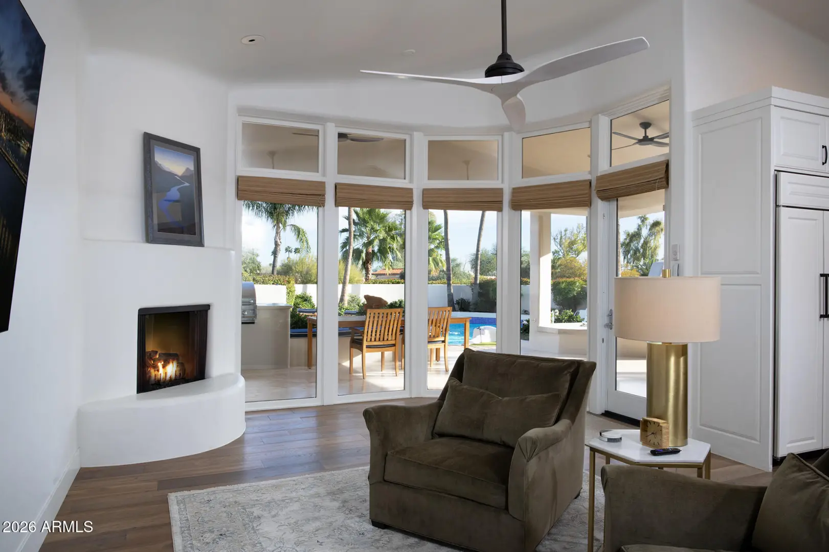Refined living meets golf-course elegance in guard-gated Pinnacle Peak Country Club Estates - perfectly positioned along the 18th fairway with an attached casita. Soaring wood-beamed ceilings, rich wood floors, and statement chandeliers set the tone, while beautifully refreshed finishes preserve the home's original character with a clean, timeless feel. At the heart of the home, a bright chef's kitchen blends style and function with premium stainless appliances, gas cooktop, quartz counters, custom cabinetry, and a generous gathering island - designed to flow seamlessly to the resort-style backyard with a sparkling private pool and inviting outdoor living. The primary suite is a true retreat with dual offices, an exercise room, and a cozy fireplace. Guests will love the private-entry